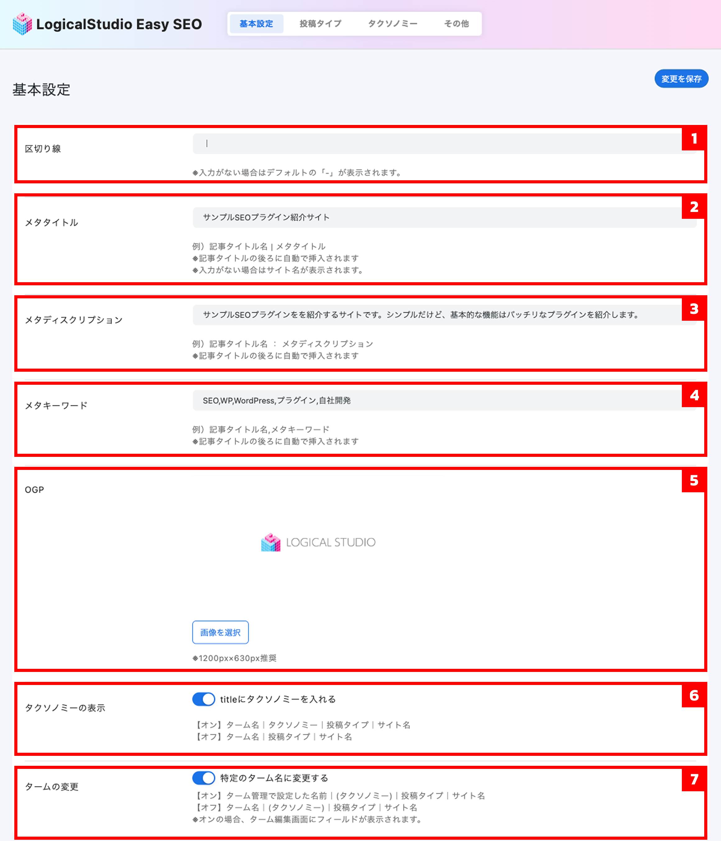 | 5 | OGP | 「画像を選択」でOGP画像を設定できます |